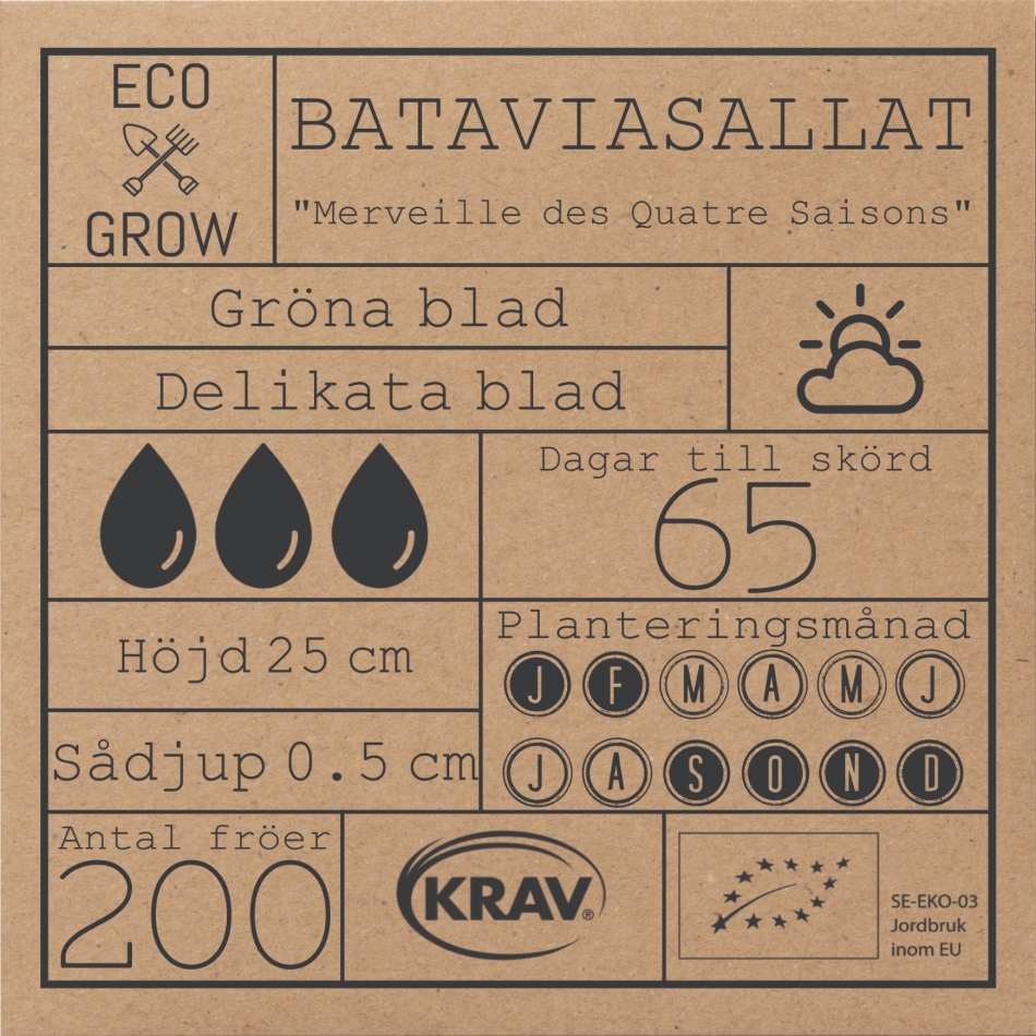Vetenskapligt namn: Lactuca sativa var. capitata crispum Dagar till skörd: 65 Planteringsmånad: Mars - Augusti Antal Fröer: 200 Planthöjd: 25 cm Artnr: 7350153560306 - Om handlaren
