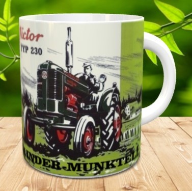Muggoprint tillverkar motivmuggar med motiv hämtade från Kerstin Westins alvarellmålningar av bil och traktorer i hennes närhet.