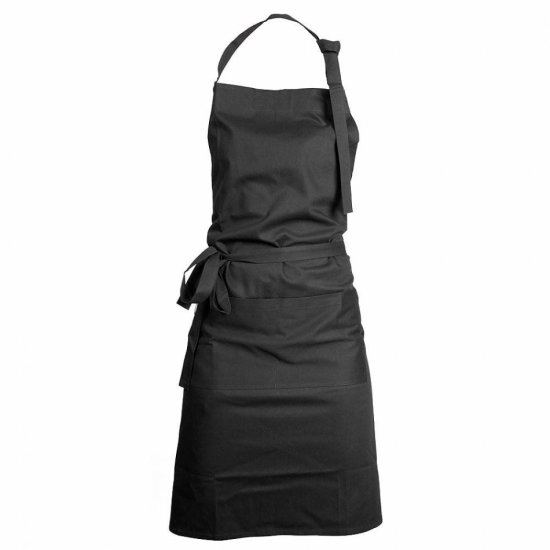 Svart bröstlappsförkläde med ficka tillverkat av 100% bomull Öko tex-certifierat.