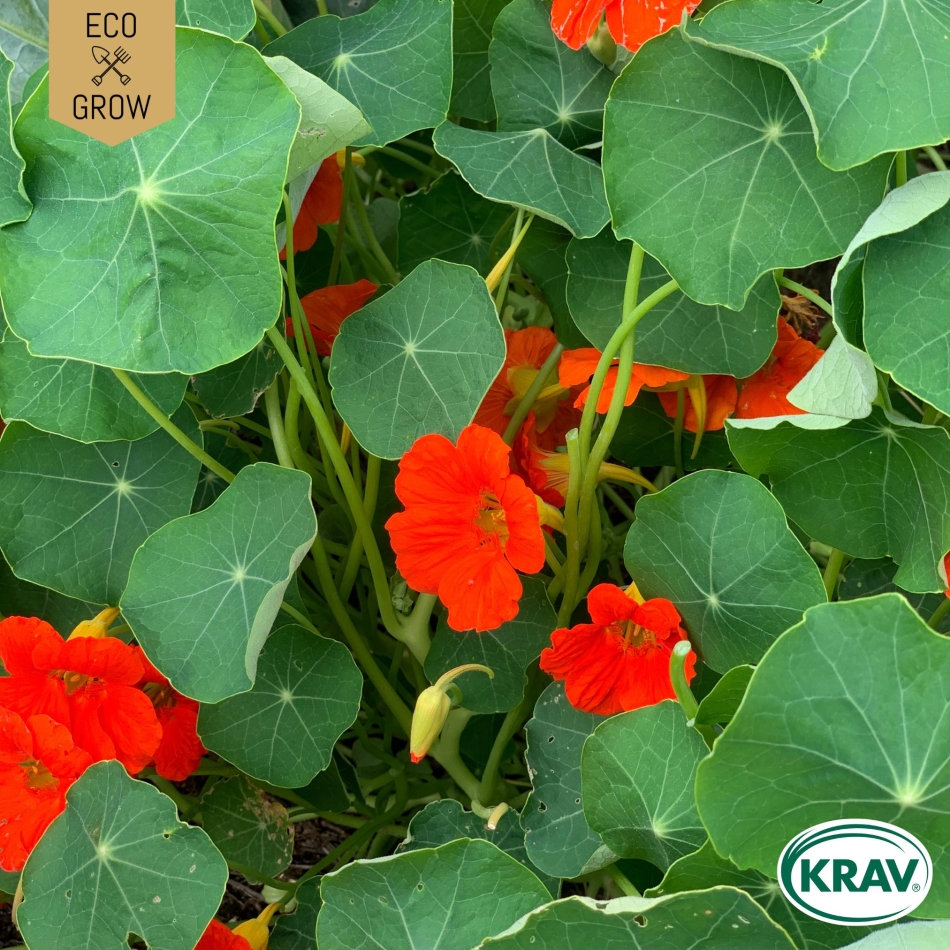 Vetenskapligt namn: Tropaeolum majus nanum Blomtid: Jun - Okt Planteringsmånad: Februari - Juni Antal Fröer: 20 Planthöjd: 35 cm Artnr: 7350153561365 - Om handlaren