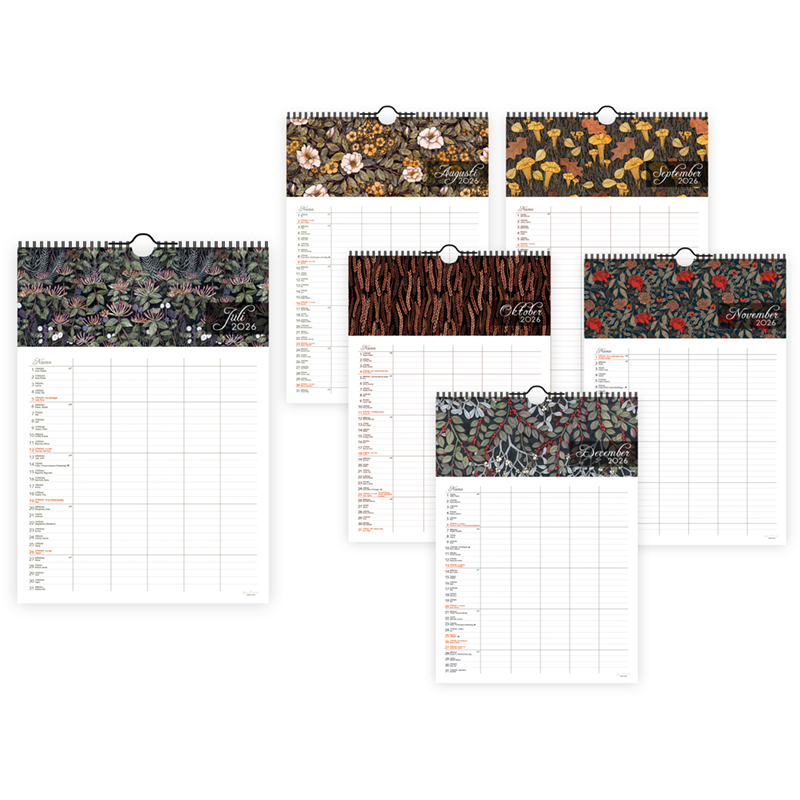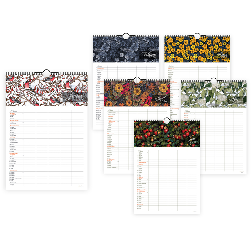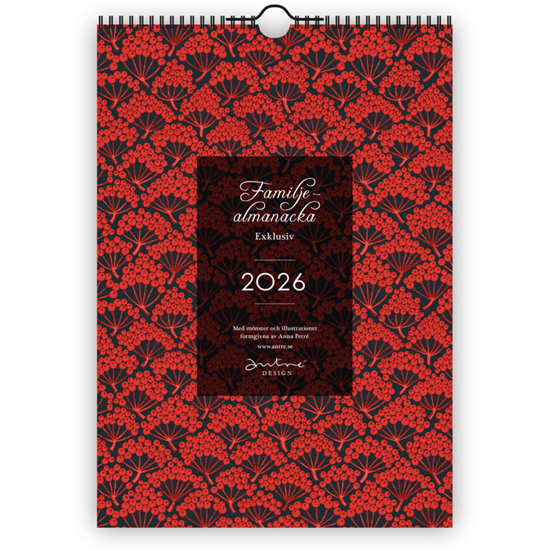 Familjealmanacka exklusiv för 2026, med handritade mönster och illustrationer av Anna Petré.