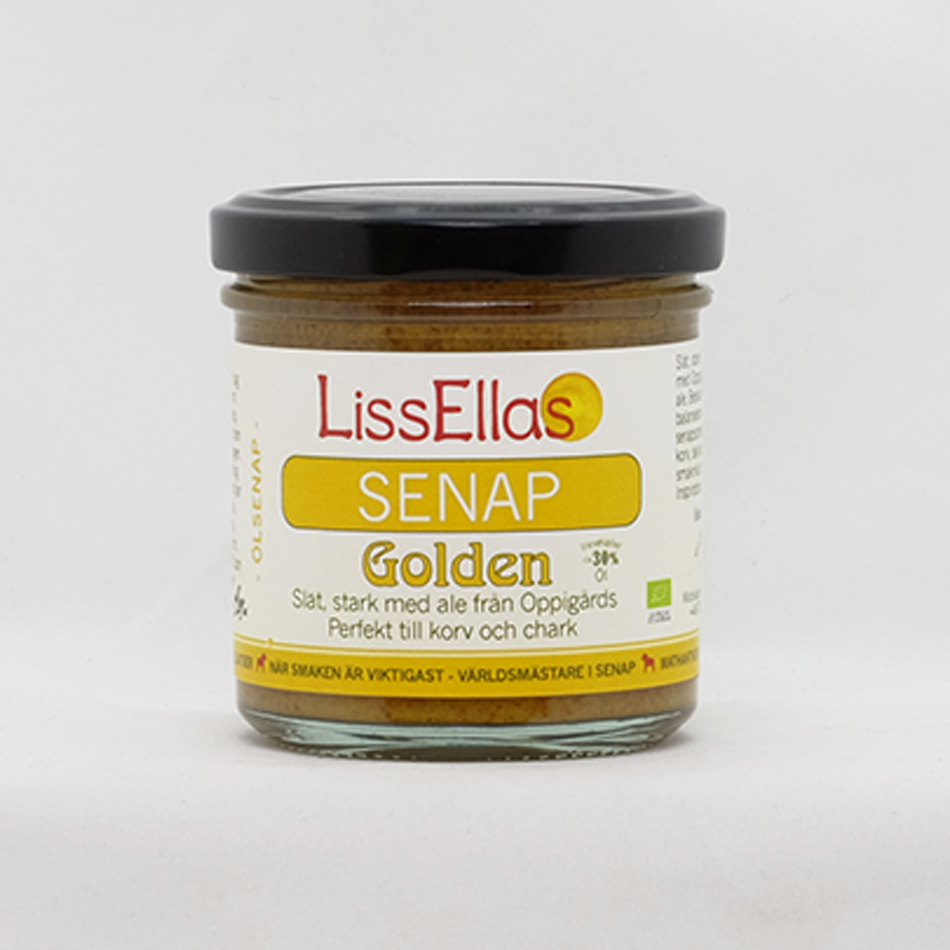 Slät, stark, fyllig senap med Oppigårds Golden ale. Beskan från ölet balanserar den starka senapssmaken. God till korv, skinka och smakrika maträtter.