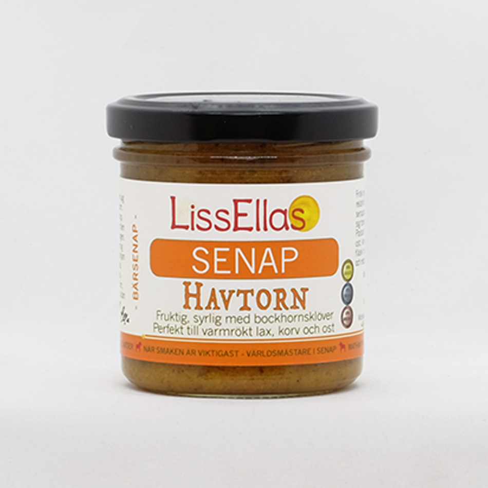 Ingredienser: Havtorn, socker, senapsfrö, vatten, ättika, havssalt, kryddor.