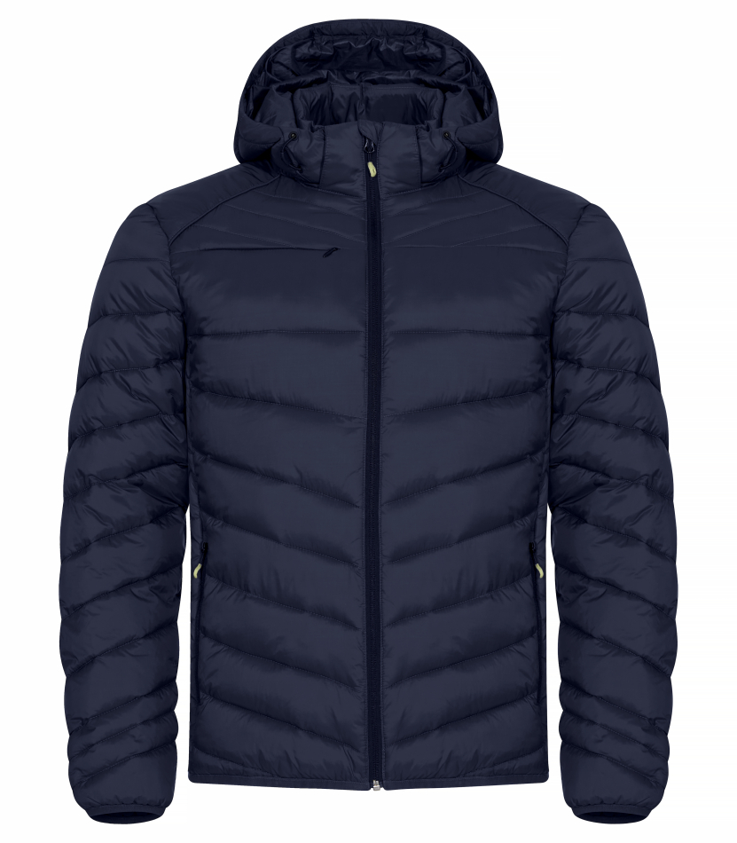 En varm och lätt jacka med dunliknande vaddering. Tillverkad av 100% återvunnen polyamid. Avtagbar barnsäker huva, tre ytterfickor med dragkedjor och två innerfickor. Elastiskt avslut i nederkant samt ärmar. Utrustad med färgade zippullers, hörlurslösning och dragkedja.