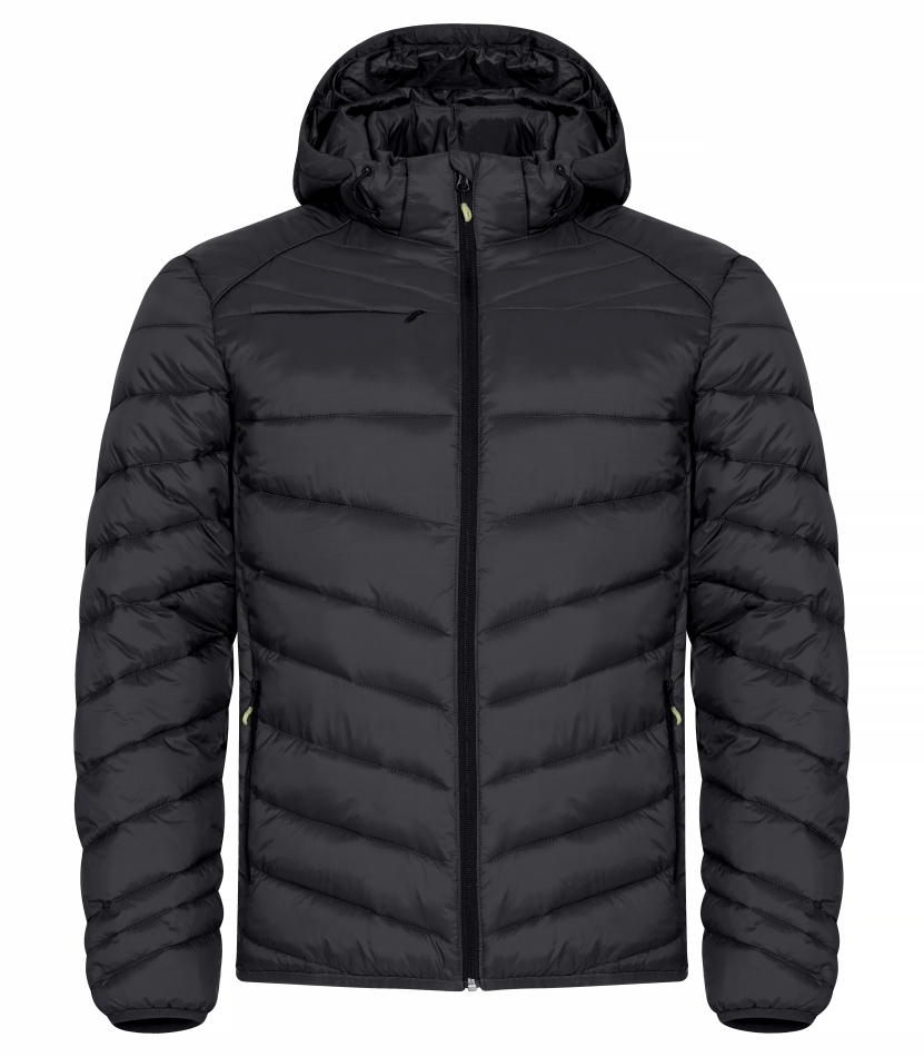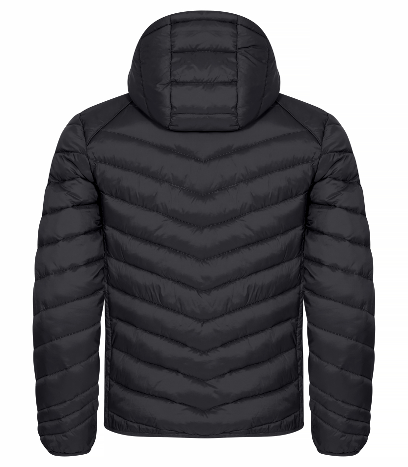 En varm och lätt jacka med dunliknande vaddering. Tillverkad av 100% återvunnen polyamid. Avtagbar barnsäker huva, tre ytterfickor med dragkedjor och två innerfickor. Elastiskt avslut i nederkant samt ärmar. Utrustad med färgade zippullers, hörlurslösning och dragkedja.