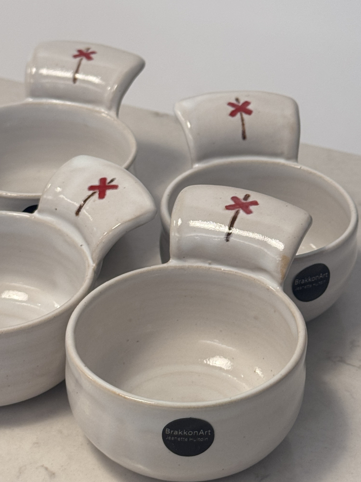 Handgjord hantverk i keramik från Skellefteå i Västerbotten. Keramik av stengodslera med inslag av rotslöjd, renhorn och symboler. Varje föremål är unikt.