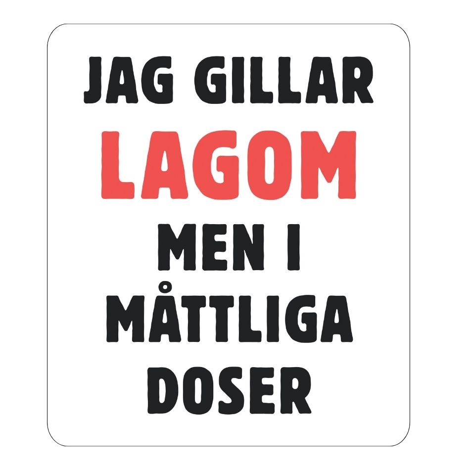 Kul kylskåpsmagnet med texten "Jag gillar lagom, men i måttliga doser".