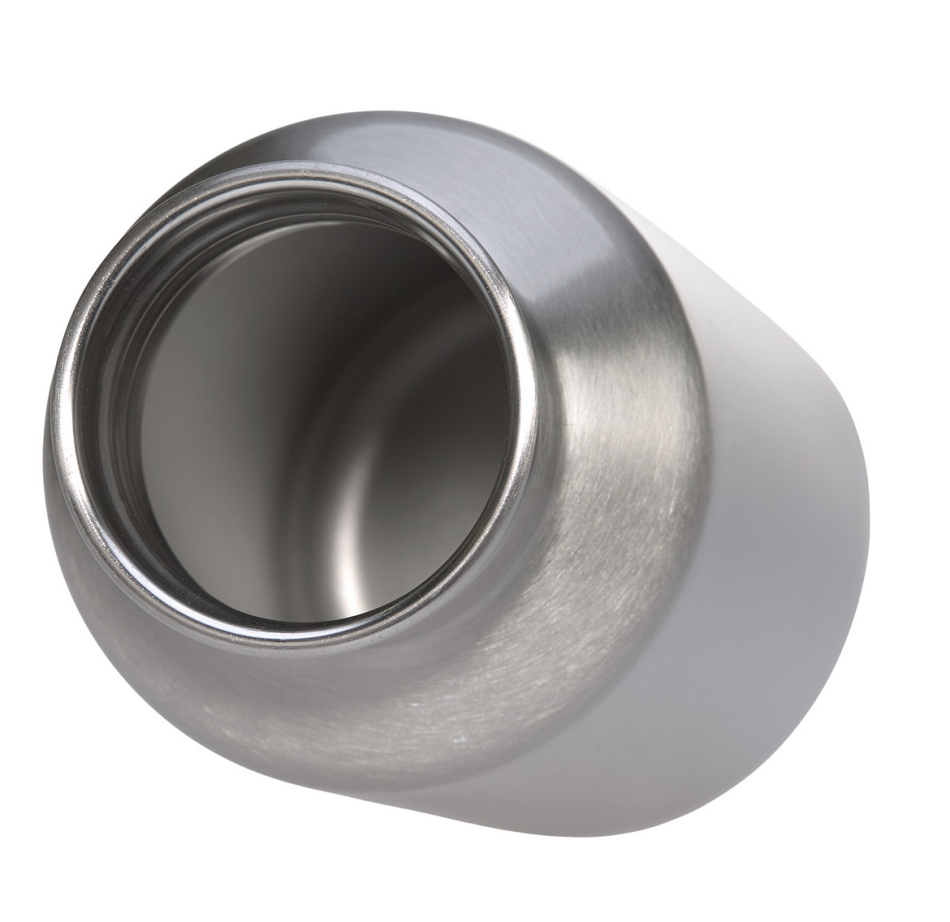 Den praktiska skruvkapsylen med handtag i rostfritt stål gör det lätt att bära eller fästa den. Flaskan har en bred öppning för enkel påfyllning.