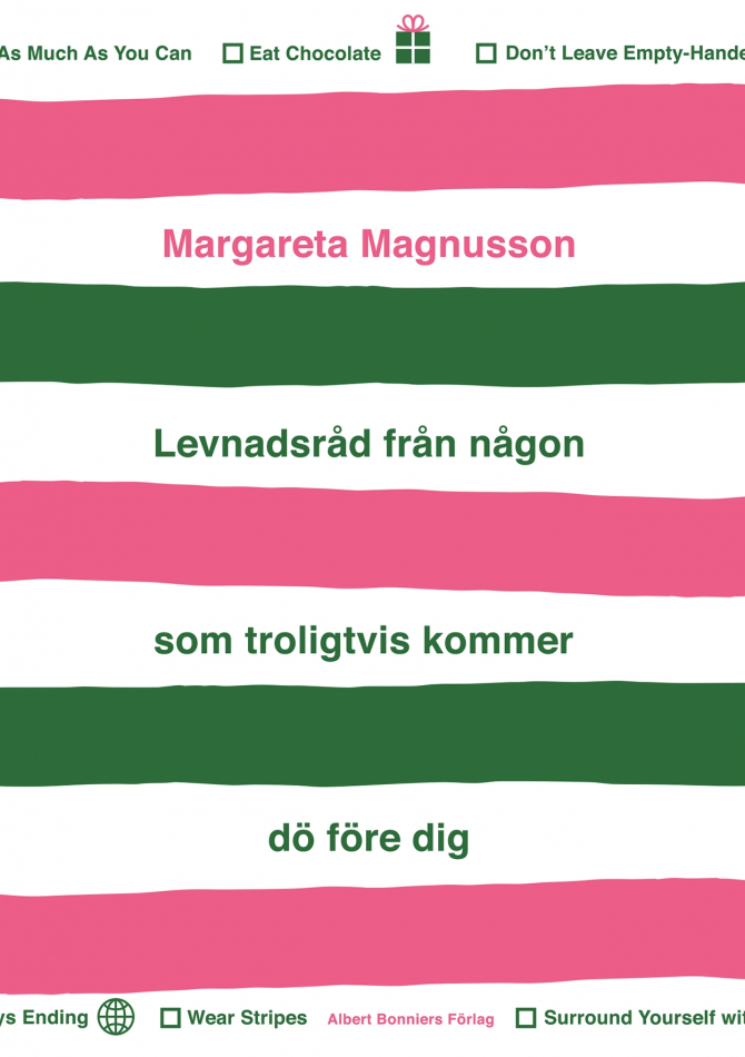 Från någon som troligtvis kommer dö före dig kommer Margareta med humoristiska och handfasta tips: Ha randigt på dig, trilla inte omkull och ät choklad.
