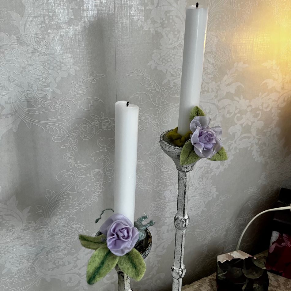 Observera att denna ljusmanschett har tyg i blomman som kan ta eld. Lämna aldrig levande ljus obevakade. Ull manschetten brinner ej men förkolnar (luktar dock illa)