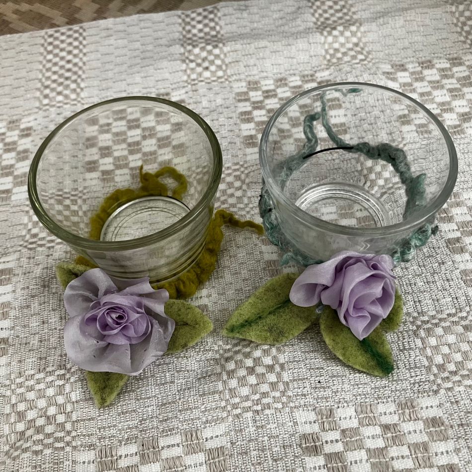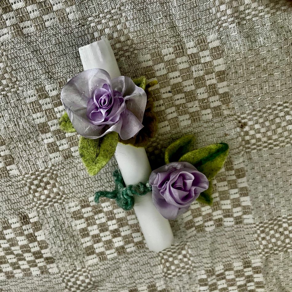 Vacker sidenros som är tillsammans med våttovad manschett i finaste merinoull. Enkel men vacker. Passar att dekorer ljus, servetter eller vad du vill.