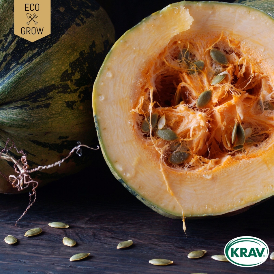 Är en pumpa som väger 3-7kg och odlas främst för sina gröna kärnor. Kärnorna är skalfria med en delikat nötig smak som är goda att äta färska eller rostade. Färska fröer har en intensiv och tydlig nötig smak som är en ren lyx att konsumera. Frukterna är runda med grön-gula strimmor som övergår i orange under lagring. Denna sort ger mänger av kärnor som är lätta att gröpa ur, även fruktköttet går att äta likt andra matpumpor. Passar utmärkt i pajer, grytor eller soppor. Även blommorna är ätliga. Låt frukterna sitta kvar på plantan så länge som möjligt innan frost.