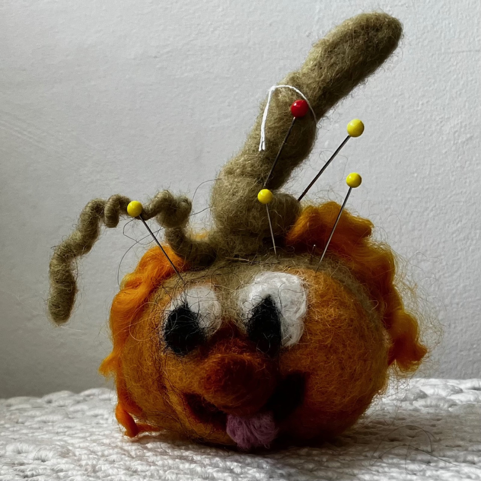 Pumpa som är designad av Nettans Ullisar den är nålfiltad helt i ull och kan användas som nåldyna eller som dekoration i hemmet. Finns endast ett exemplar. En lite annorlunda present till den som handarbetar mycket. Väger cirka 30 gr och är cirka 10 cm hög , 6 cm bred. Mellersta bilden representerar färgen bäst.Artnr: 2025nlsdynagul