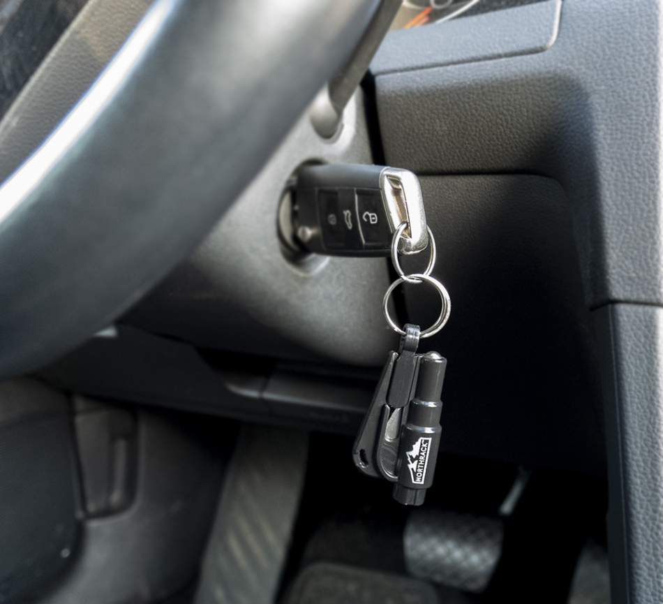 Tar dig snabbt ur bilen när olyckan är framme. Northrack Car Escape är en liten nyckelring med stor funktion som kan göra hela skillnaden när situationen är som mest allvarlig. Northrack Car Escape är en kombinerad bältesskärare och fönsterkrossare som tar dig loss när bildörren inte går att öppna eller fönstret inte går att få ner, exempelvis om bilen blir helt strömlös, eller när bilbältet har fastnat.