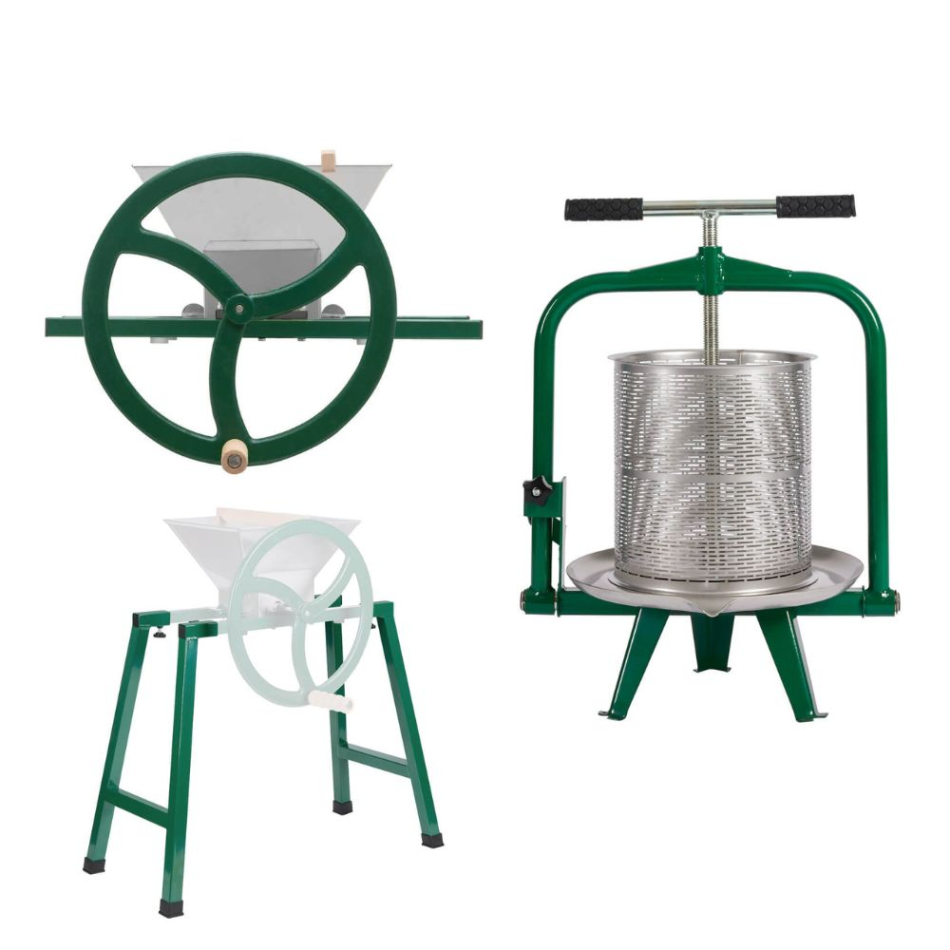Komplett paket för att göra sin egen must i trädgården. Paketet består av vår Fruktkross Manuell 9L, Stödben till Fruktkross Manuell och Fruktpress Original 12L. Tack vare fruktkrossens robusta vevhjul och unika konstruktion av krosshjulen uppnås med enkelhet en optimal konsistens på fruktmassan för att ge ett så högt utbyte must som möjligt. Fruktpressen har en trapetsgängad stång för att få en hög presskraft utan större ansträngning. Alla delar som kommer i kontakt med fruktmassa och must är tillverkade av rostfritt stål för mycket god hållbarhet, funktion och livsmedelshygien.