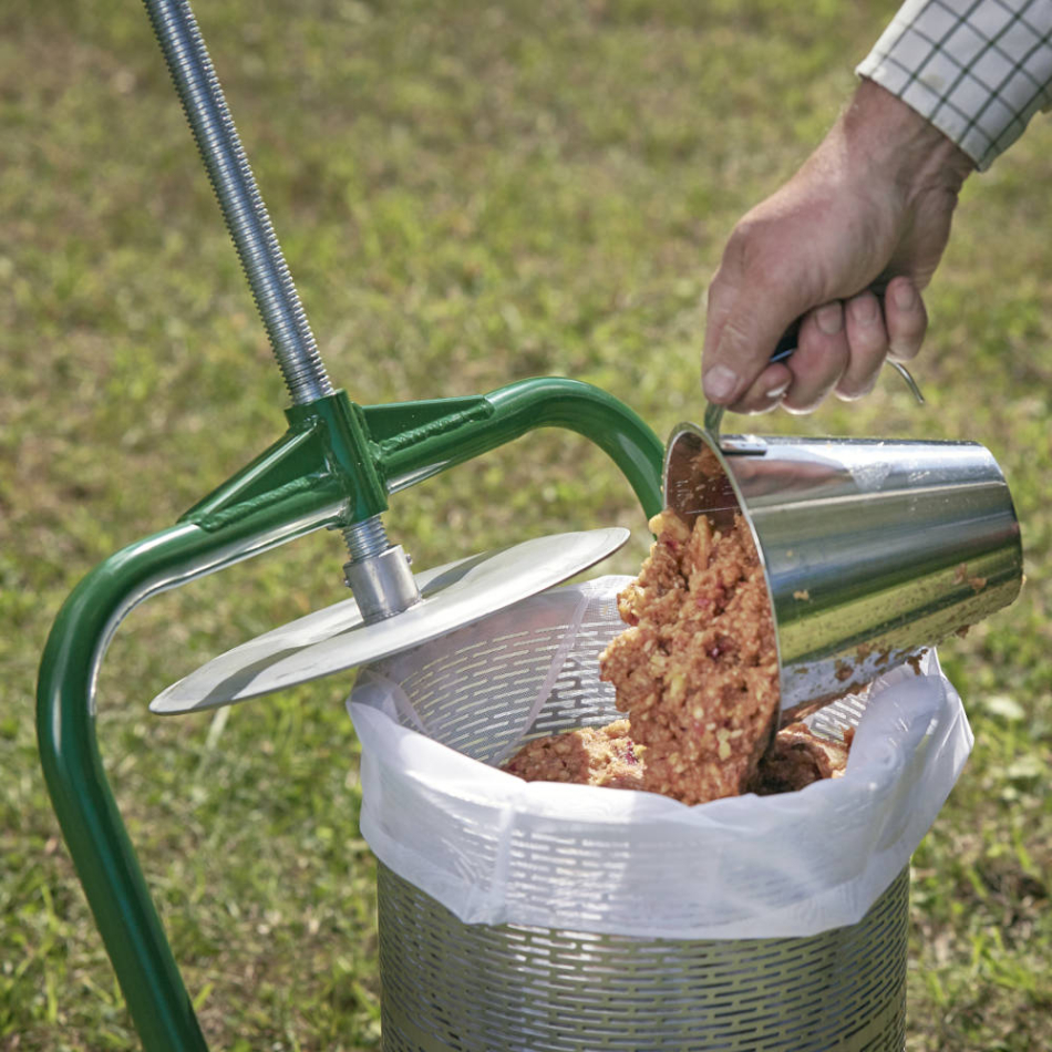 Använd bara mogen och krossad frukt. Luta ramen för att enkelt kunna lägga i den krossade fruktmassan. Lägg fruktmassan, som du gjort med fruktkrossen, i presskorgen och skruva ner tryckplattan. Musten trycks då ut i den finperforerade rostfria presskorgen, redo att avnjutas! De många hålen i korgen gör att musten enkelt rinner ut men att fruktmassan samtidigt stannar kvar i korgen.Artnr: 1015-1016 - Om handlaren