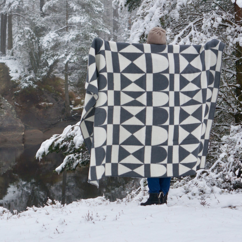 Pläden Bows, med mönster designat av Josef Frank redan på 1920-talet är en av Almedahls mest populära mönster.