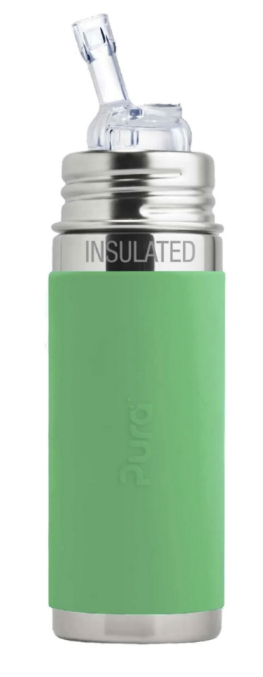 Pura isolerad sugrörsflaska 260ml rostfritt stål med silikonhölje - moss