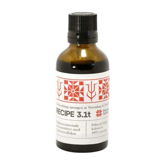 Recipe 3.1t är ett flytande örtextrakt som förenar vetenskap och tradition genom noggrant utvalda örter. Det som särskiljer Recipe 3.1t är dess unika sammansättning, där ingredienser som Kronärtskocka, Bockhornsklöver, Mjölktistel och Brännässla harmoniskt samverkar.