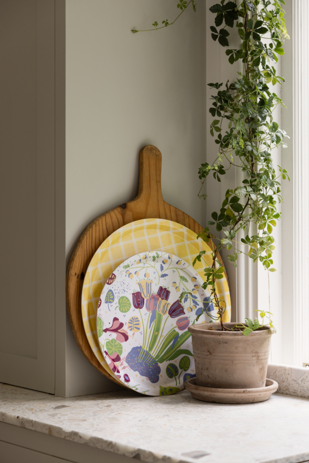 Med sin praktiska storlek på 31 cm passar brickan perfekt till frukost, fika eller små serveringar, både inne och ute. Tillverkad i formpressat björklaminat som är tåligt, lätt att rengöra och håller länge.