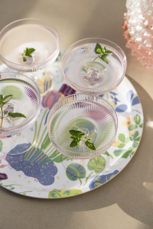 Mönstret, med sina mjuka bladformer och organiska växtmotiv, är hämtat ur Almedahls klassiska arkiv och får nytt liv i ljusa, somriga färger.